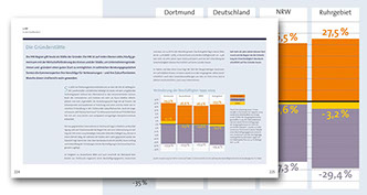 Zu den herausragenden Projekten gehört sicher das Buch zum 150-jährigen Jubiläum der IHK zu Dortmund. Schon allein der Umfang war enorm, aber es gab auch so viele verschiedene Inhalte und Themen – von Geschichte bis Industrie, Vergangenheit, Gegenwart und Zukunft –, das alles galt es zu visualisieren.